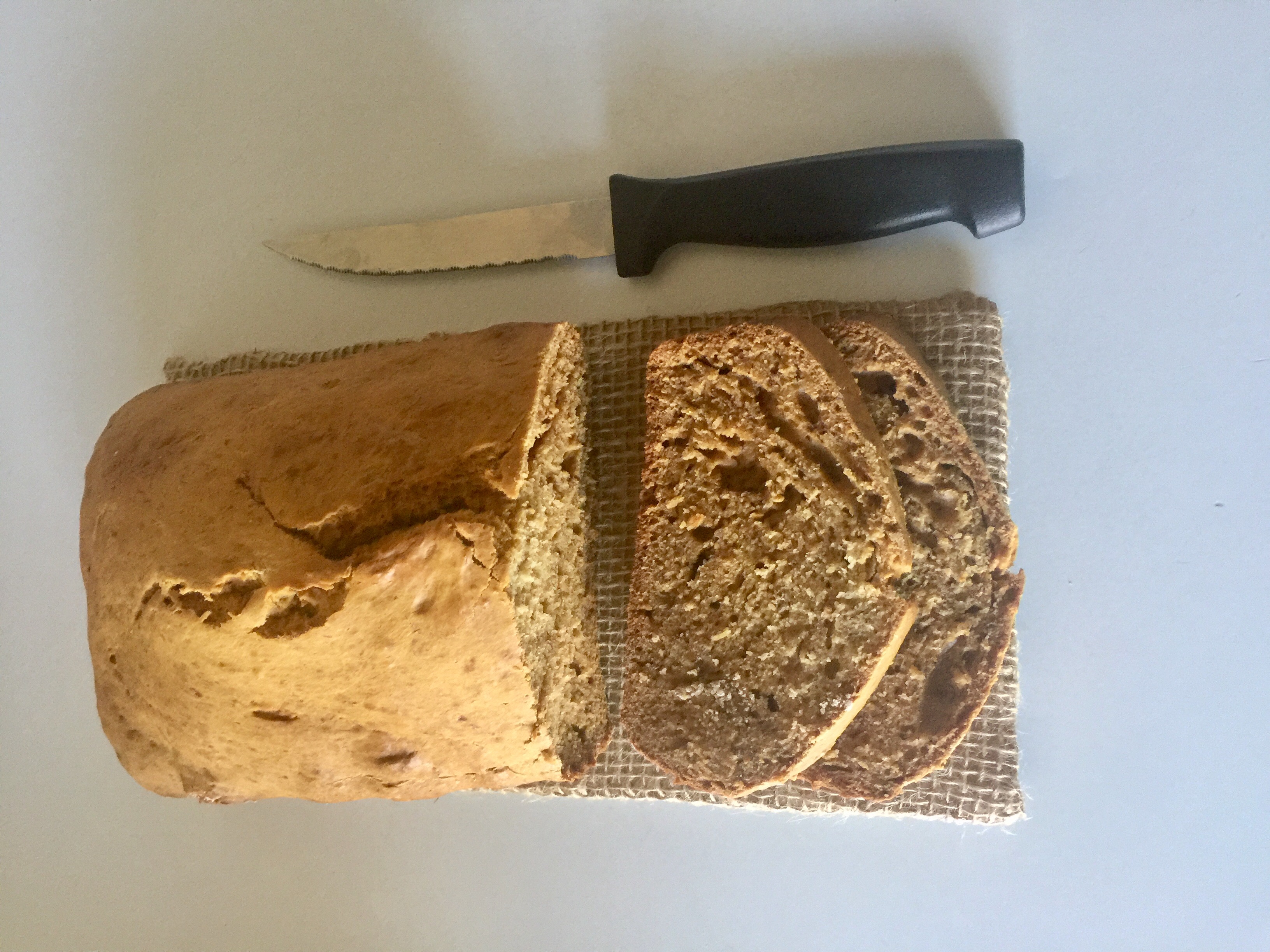 - Bake in the oven for 60 min. Insert a toothpick into the center of the loaf, if it comes out clean, then the bread is ready. Let it cool down and serve.