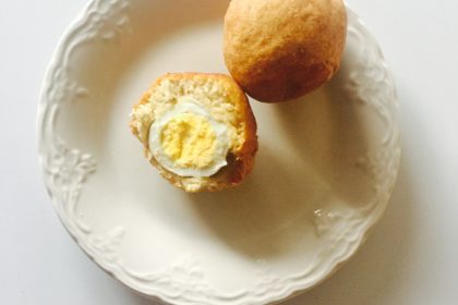 Save Print WEST AFRICAN SCOTCH EGGS Prep time: 45 mins Cook time: 15 mins Total time: 1 hour Ingredients 2 Cups of flour 1 Tsp Baking soda ¼ Tsp of salt 2 Tbsp Sugar 2 Tbsp b