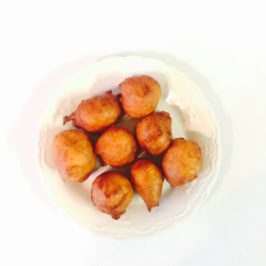 6. Scoop the dough with an ice cream scoop or your finger and drop it into the hot oil.