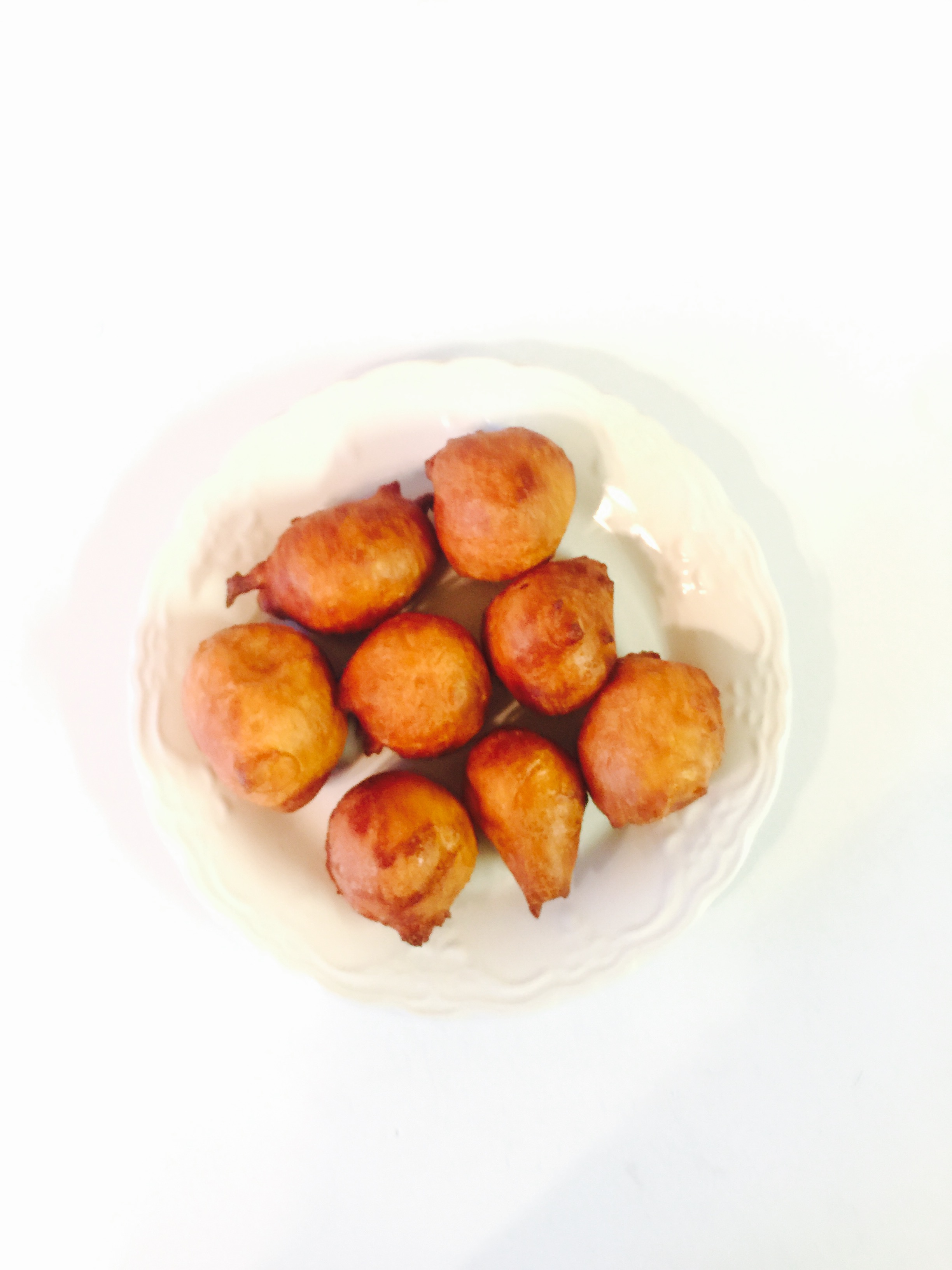 6. Scoop the dough with an ice cream scoop or your finger and drop it into the hot oil.