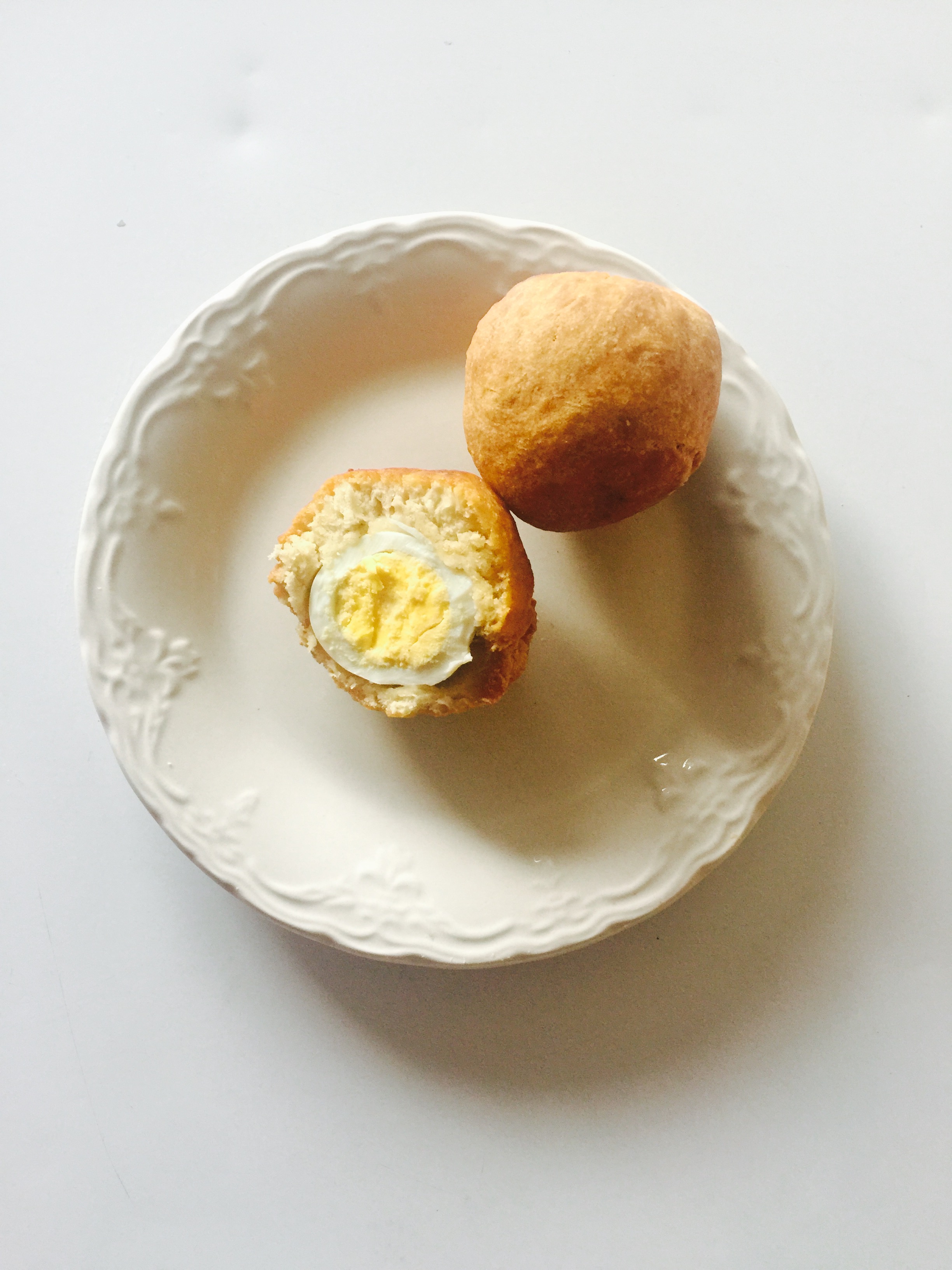 - Divide the dough into 8 parts and wrap tightly each of the dough around each boiled egg.